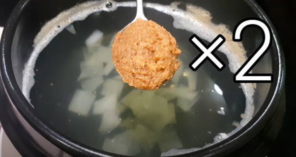 이제 여기에 시판용 된장을 브랜드에 상관없이 두 스푼 넣어주세요.