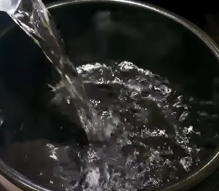 4인분 정도의 양을 만들 거고요 물 1리터를 뚝배기에 부어주세요.