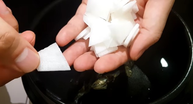 양파 또한 다 건져주시고요. 무만 남겨두시면 됩니다.
